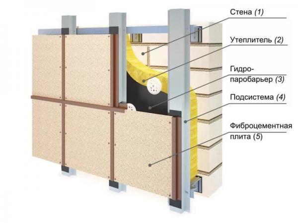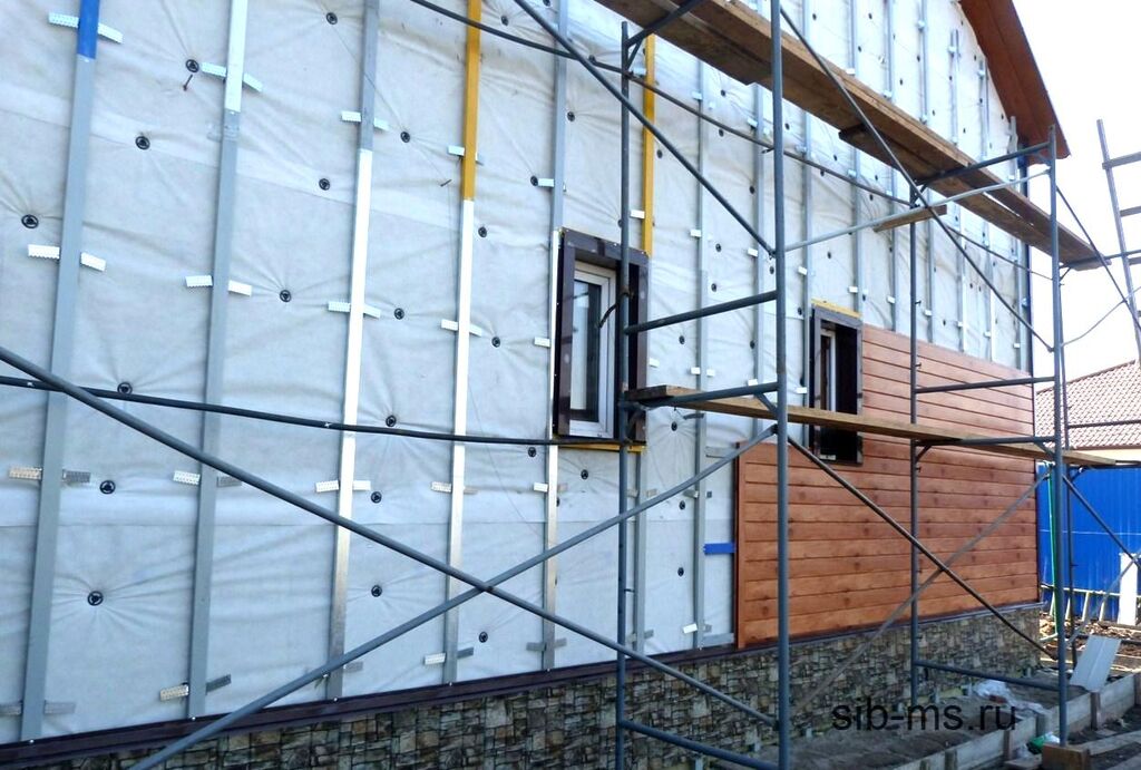 Навесные фасадные системы с воздушным зазором включают в себя металлическую или деревянную подконструкцию (каркас), слой теплоизоляции (или без него) и облицовочную плиту.