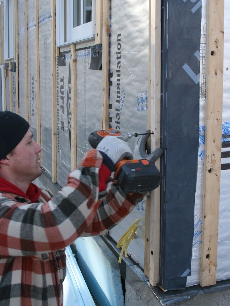 Это барьер для любой воды, которая может проникнуть за сайдинг, поэтому убедитесь, что верхние части перекрывают нижние. Заклейте любые разрывы или дыры скотчем (можно приобрести в домашних центрах).