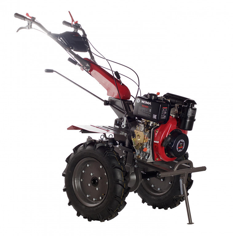 Производитель предлагает несколько вариантов дизельных мотоблоков от 7 до 10 л.с. с валом отбора мощности. Электростартер в комплекте с аккумулятором облегчает запуск агрегата в межсезонье и зимой.