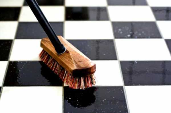 Белые швы плитки на полу.
