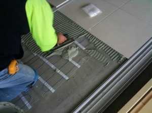 - При укладке на тёплый пол нужно брать высокоэластичный клей: Ceresit CM 17, KNAUF FLEX, Vetonit RF .