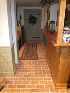Раскладка клинкерной плитки в коридоре со смещением (под кирпичную кладку).