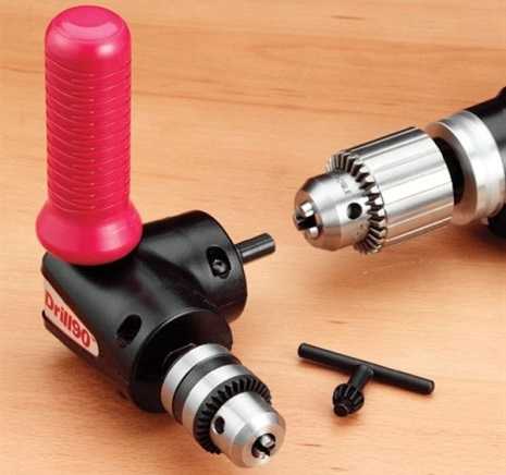 - Если нужно еще и сверлить под углом 90 градусов, то нужна другая угловая насадка на дрель.