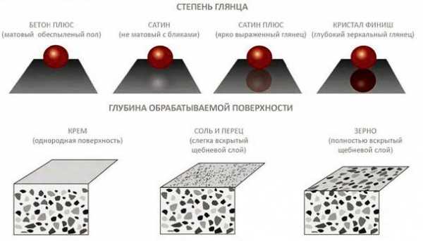 Так же стоит заранее озаботиться покупкой пропитки. Благодаря первичной полировке снимается верхний слой, после чего бетон отлично впитывает укрепляющие гидроизоляционные пропитки. Именно она предает эффект глянца и укрепляет поверхность, защищая ее от сколов, трещин и воздействия влаги.