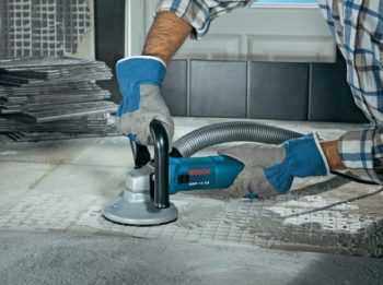Для домашних условий отлично подойдет обычная болгарка мощностью 1,2-1,5 киловатта. Диск выбирается размером 150-180 мм. Так же следует озаботиться водососом или промышленным пылесосом с укрытием, чтобы пыль вообще не попадала в воздух или ,если все же попадает, то сразу удалялась в пылевой мешок.