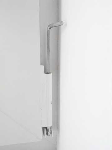 Третий шаг. Вставьте шестигранник в обнаруженное отверстие и начинайте осторожно вращать ключ по направлению движения часовой стрелки. Створка начнет отходить от крепежной петли, а часть, противоположная по отношению к регулируемой петле, станет опускаться.