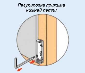 Если это не помогло, придется заняться регулировкой петель. Как это сделать, описано выше.