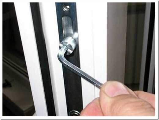 Обратите внимание! Вставив в гнезда петель инструмент и вращая его по часовой стрелке, вы притягиваете оконную половинку к раме, и низ приподнимается. И наоборот: вращение против часовой стрелки опускает створку вниз.