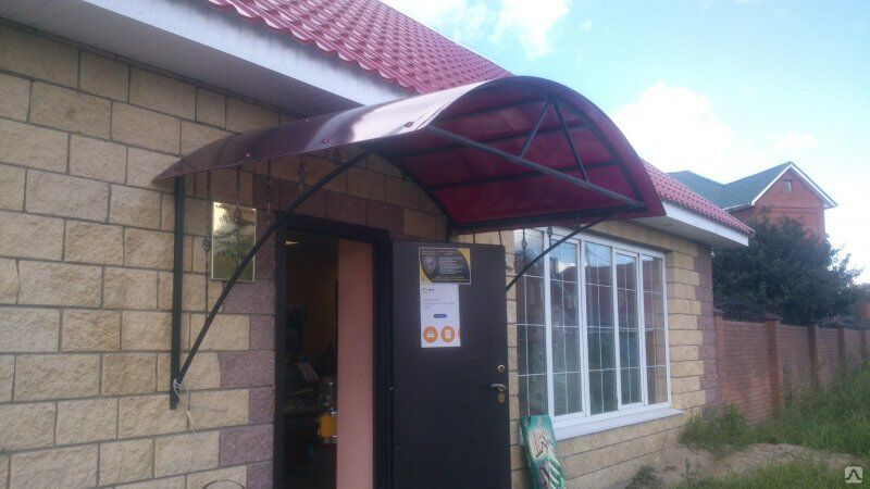 Как вы могли заметить, навесы для крыльца из поликарбоната, фото которых размещены в интернете, в большинстве случаев изготовлены из металла. Материалом для их изготовления служат: