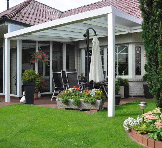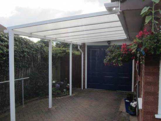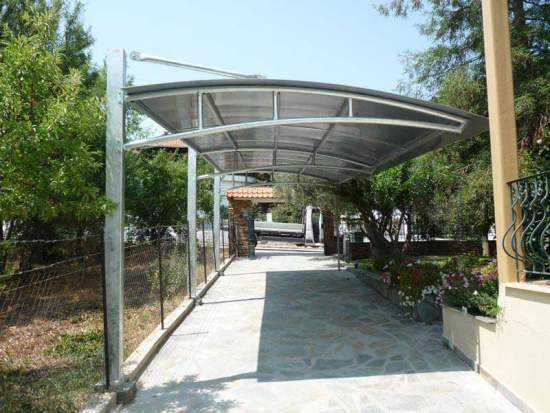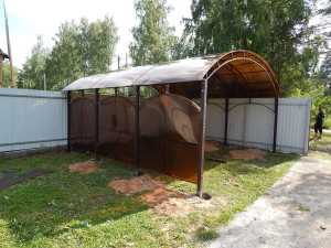 Прекрасная альтернатива обычному навесу — навес с боковыми стенками из тех же панелей сотового поликарбоната.