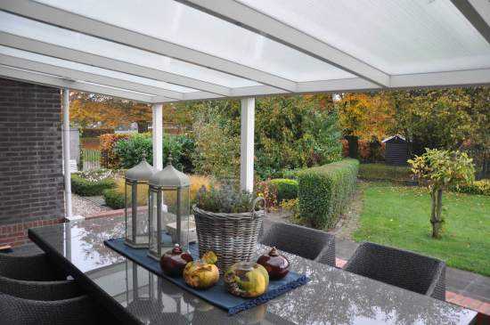 Навес из поликарбоната имеет и еще одно преимущество. Если сооружение не имеет боковых стенок, то неизбежно будет происходить занос боковым ветром снега и дождя. Поликарбонат, как правило, прозрачный материал, который позволит проникать солнечным лучам, что будет профилактикой образования сырости под навесом, а также весной снег быстро сойдет с покрытия таких террас.