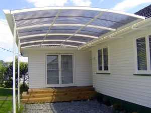 Поликарбонат позволяет быстро сделать навес под машину, а также выполнить козырьки навесы над входом в дом или навес над крыльцом в баню.