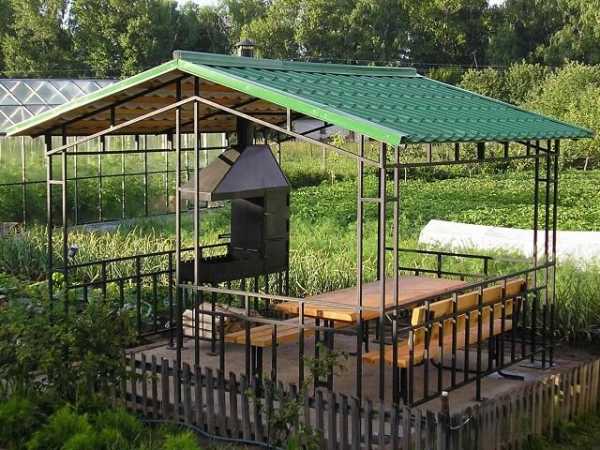 Использование металлопрофиля также лучше, с точки зрения пожарной безопасности, поэтому применение металлопрофиля рекомендуется при устройстве навесов на территории беседок и террас с мангалом или другими жаровнями.