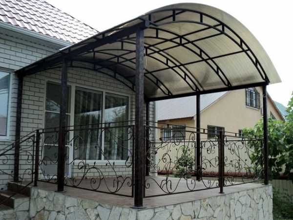 Для украшения навеса часто используют художественную ковку. Правда, ее в большинстве случаев можно встретить у входа солидных городских зданий – ресторанов, магазинов, но кто сказал, что художественной ковкой нельзя украсить навес на даче, если она подходит к стилю дома?