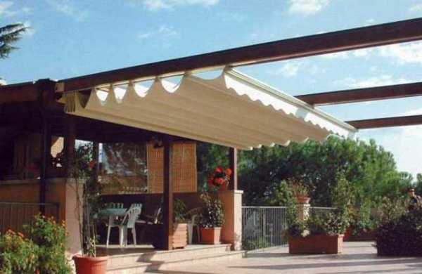 Магазины предлагают огромный выбор готовых текстильных навесов как в качестве отдельно стоящих элементов (шатров), так и примыкающих к основной конструкции (маркизы навесы). Тканевые варианты имеют ряд недостатков: обладают низкой устойчивостью и сопротивляемостью к ветру, сильному дождю. Однако ряд преимуществ все-таки заставляет многих дачников остановить свой выбор именно на них: