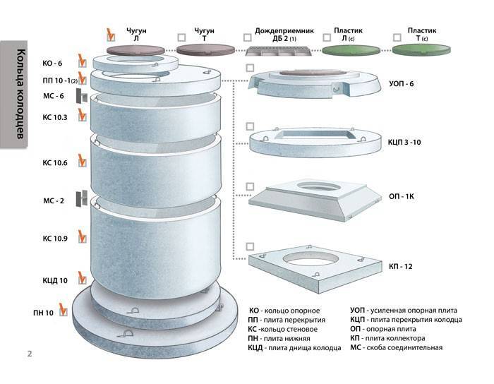 При этом производители учитывают возможную подвижность почвы и влияние грунтовых вод. КЦД подбираются по диаметру других деталей колодца — колец КЦ, крышек и т.п.