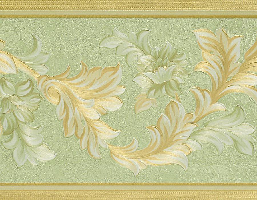879778 Винтажный зеленый бордюр для обоев с цветочным узором FDB05762