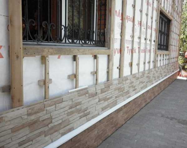 Дальше все зависит от того какой материал выбран для обновления одноэтажного дома. Если фасад обустраивается по принципу вентилируемой конструкции, то выполняют установку каркаса из деревянных реек или металлических профилей.
