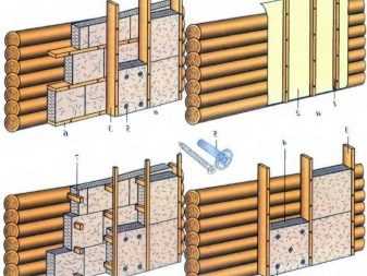 При наружной отделке бревенчатых стен здания чаще всего используются сразу несколько изоляционных материалов с целью наилучшего утепления.