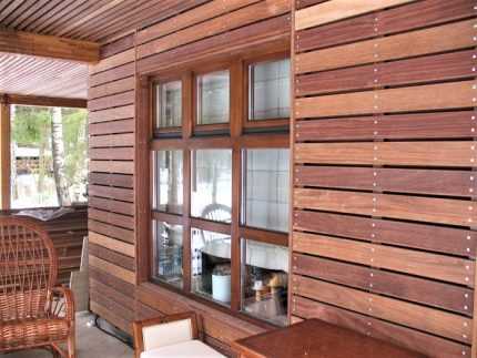 Чаще всего изготавливают этот отделочный материал из древесины, путем прессования и пропитки смолами. Деревянные бруски, доски и вагонка подходит как для внутренних, так и для наружных работ.