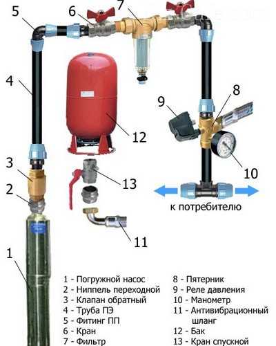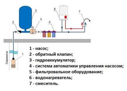 Оборудование для индивидуального водоснабжения состоит из следующих элементов: