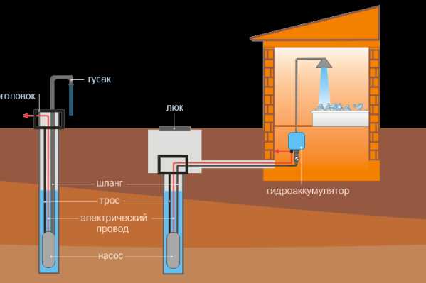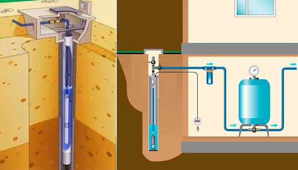 - Насоса, он может быть погружным либо располагаться на поверхности.