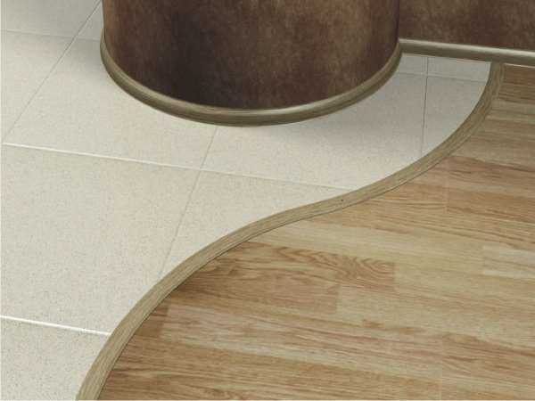 Имеются даже пластиковые гибкие пороги, с помощью которых можно создать стык интересной формы, включая округлые или с усложненной геометрией.