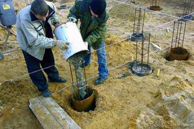 Наиболее популярны в последнее время стали буронабивные сваи. Процесс их изготовления очень прост: ручным (пневмо-, бензо- или электрическим – для ускорения) ямобуром делаются вертикальные отверстия в земле диаметром 25-30 см, потом их заполняют бетоном с арматурой, а в верхней части замуровывают шпильку.