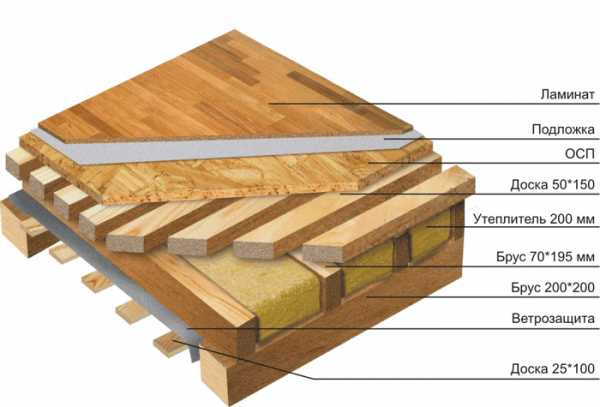 - После этого черновой пол накрывают ветро- и пароизоляционным материалом.