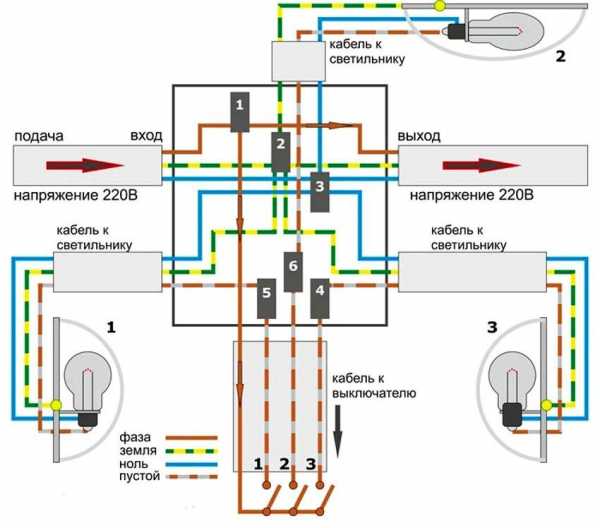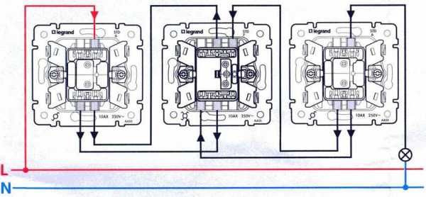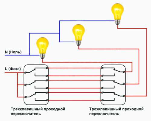 Подключение трехклавишного проходного выключателя — схема — Фото