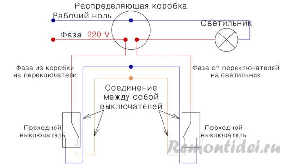 Схема подключения проходного выключателя с 2х мест, инструкция