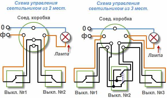 Схема подключения проходного выключателя с двумя точками управления — Фото