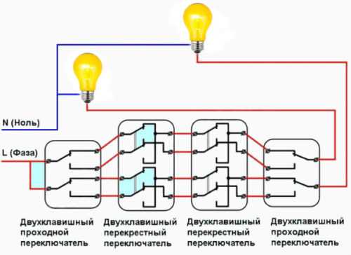 Подключение проходного выключателя двухклавишного и трехклавишного — Фото