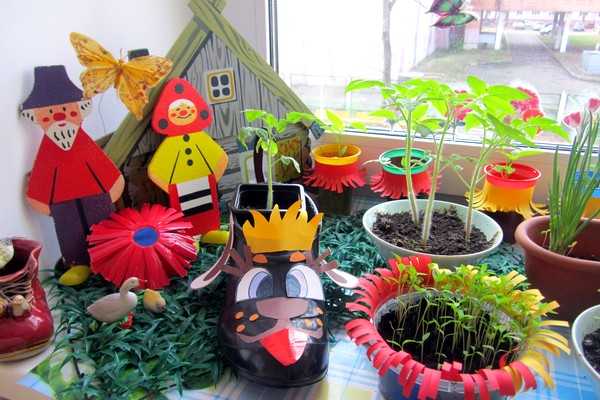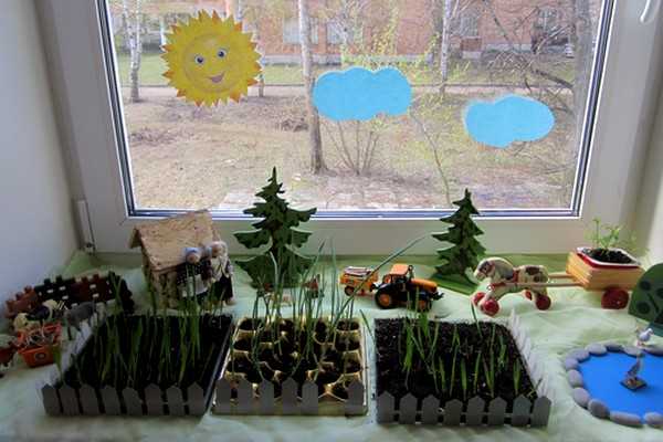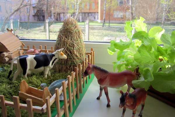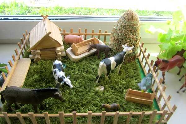 Фигурки людей и животных, домики, заборчики, ручейки или прудики, машинки и паровозики — изюминка детского огорода на окошке. Что-то можно смастерить самим, что-то заимствовать в игрушках или сделать из конструктора.