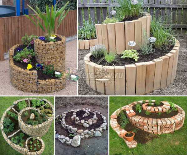 Уникальные клумбы из поленьев или старого кирпича и камня.