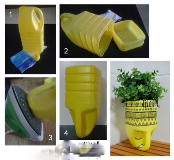 Вот, смотрите как из не большой канистры яркого цвета просто приготовить цветочную подставку.