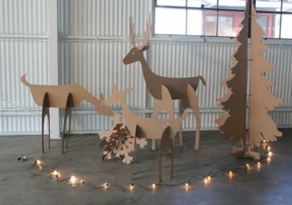 Забавные звери из картона, выглядывающие из-за кустов вносят на участок свой колорит.