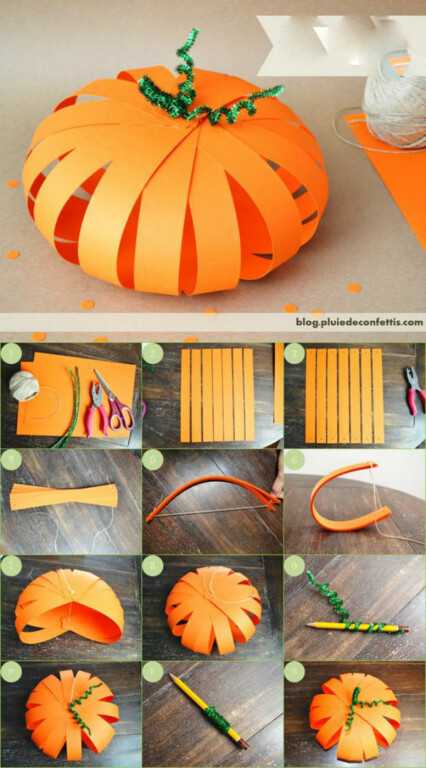Обязательно, пока не созрел урожай, делайте яркие акценты на участке. Тыква из плотной бумаги прекрасное решение.