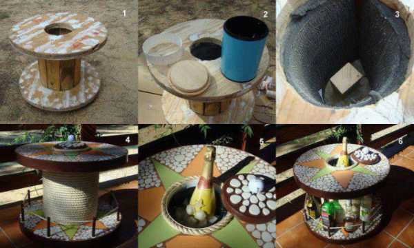 А еще на даче сбить для посиделок с друзьями мини бар удобном столике из строительной кадушки.
