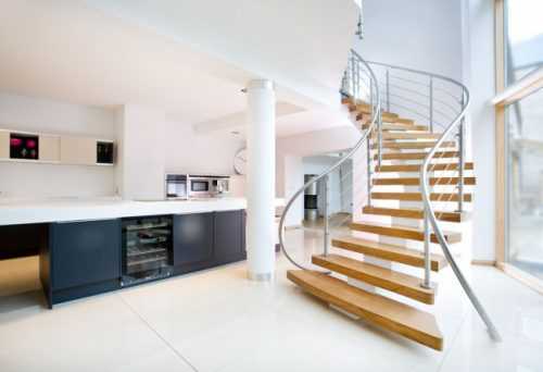 Современная лестница с деревянными ступеньками