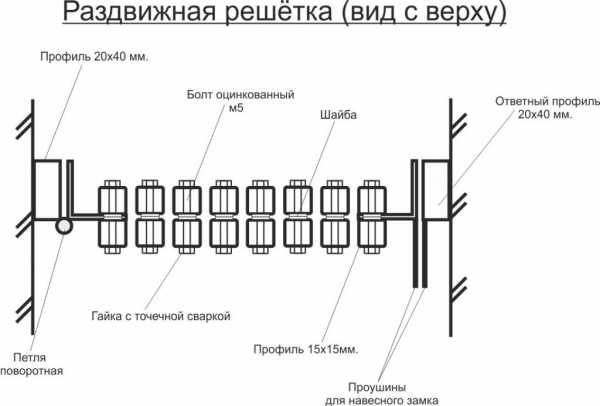 Аналог можно изготовить своими руками, но потребуется его несколько упростить. Нужно оснастить подвижными рычагами стойки решетки, расположенные вертикально. Они позволят менять расстояние между стойками и складывать конструкцию. Эта технология поможет сэкономить финансы. Стоит заметить, что ее не очень удобно открывать. Стоит установить замки на оконные решетки такого типа, иначе злоумышленник сможет отодвинуть их с улицы.