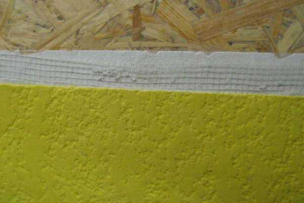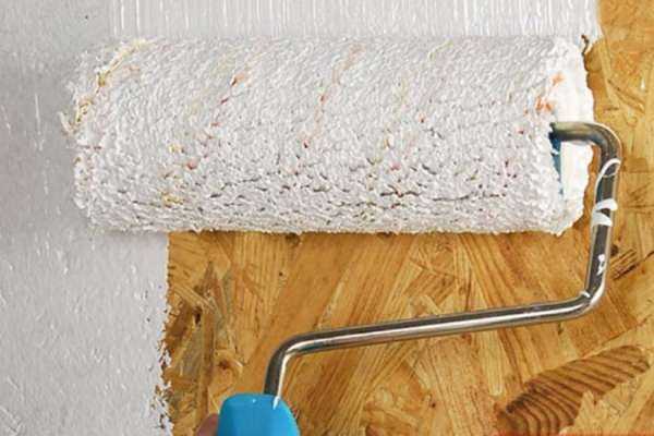 Нанесение декоративных шпатлевок — под шпатлевание плиты можно не зачищать особо тщательно, но прогрунтовать нужно обильно и специальной грунтовкой — с добавлением ПВА.