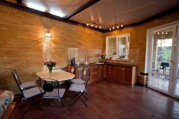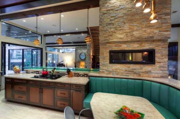 Либо, декоративным камнем можно облицевать определенную часть кухни, например, обеденную зону.