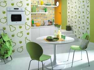 Так же, относительно простой вариант отделки кухонных стен. В отличии от покраски, при использовании обоев нет таких высоких требований