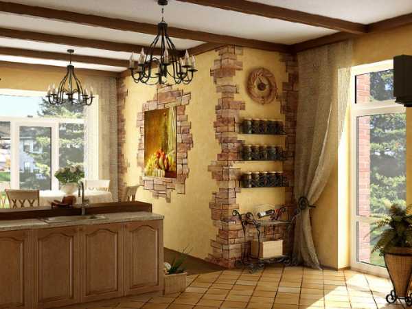 Чтобы защитить отштукатуренную поверхность от агрессивных воздействий кухонной среды, следует обязательно покрыть ее специальным лаком. Такое оформление выглядит весьма эффектно и богато.