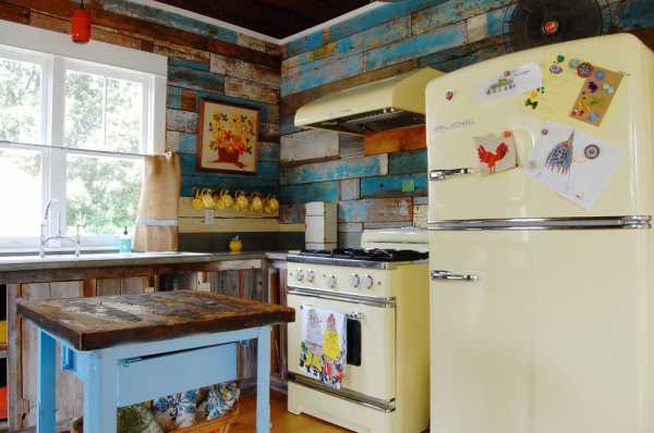 Яркая отделка акцентной стены кухни в стиле эклектика