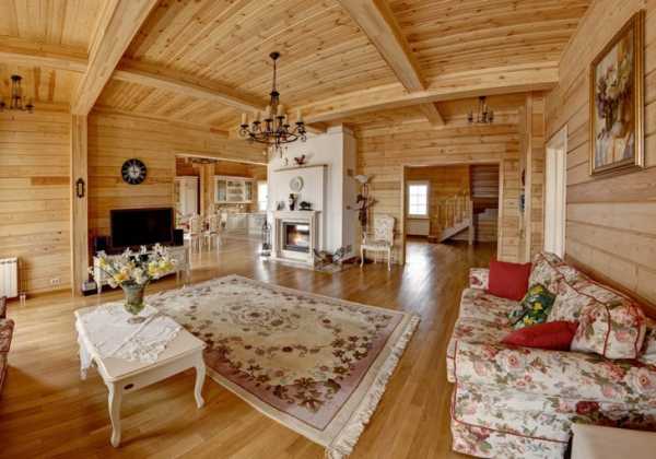 В частном доме такой материал можно использовать в качестве настила для пола. Они идеально подходит для напольных поверхностей. Дерево способно сохранять тепло, обладает высокими эстетическими свойствами и экологичностью. В случае с бюджетной отделкой выбор падает на обычные доски. При правильной подготовке и монтаже они способны сохранить «природность» интерьера и прослужить много десятилетий.