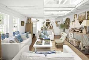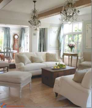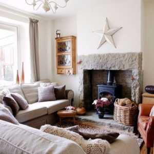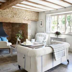 Гостиная комната коттеджа, оформленная в стиле прованс