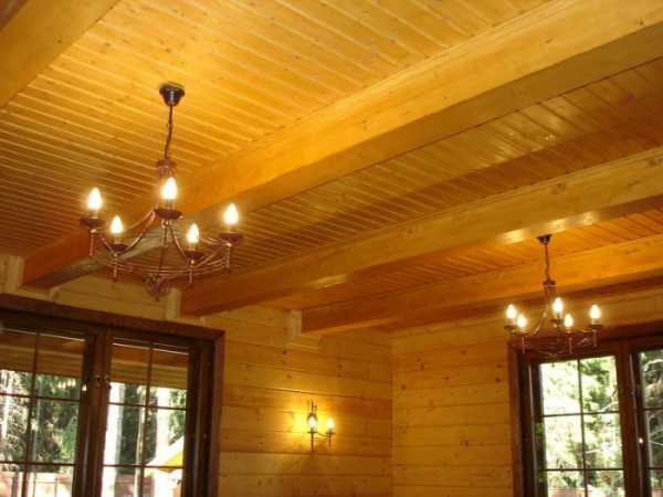 Как стены, так и потолок можно отделать имитацией бруса, вагонкой или блок-хаусом. Встречаются и довольно интересные комбинации. Встречаются различные комбинации. К примеру, можно отделать потолок вагонкой, а стены – блок-хаусом. В некоторых интерьерах потолок отделывают деревом, а стены – другим материалом.