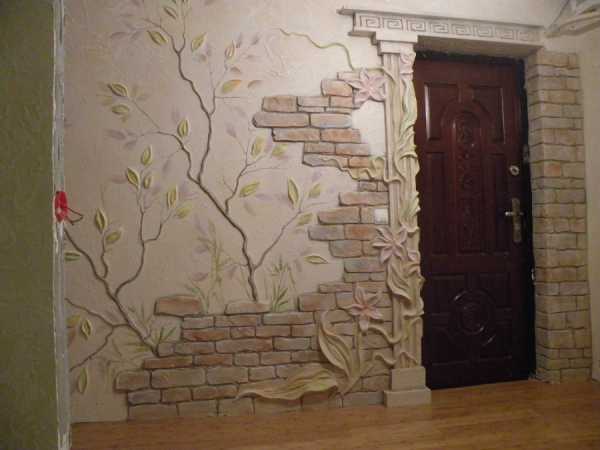 Качественный, но дорогой материал используется для внутренней отделки помещений. Благодаря использованию декоративной штукатурки поверхность стен зрительно выравнивается. При этом скрываются небольшие дефекты, а стену можно окрасить в любой оттенок. Кроме того, получается довольно необычная текстура. Уход за стенами, облицованными декоративной штукатуркой, осуществляется довольно просто. Ее можно использовать для помещений с повышенной влажностью.